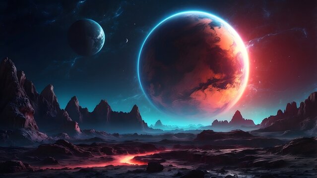 Mysterious light beam over moonlit terrain, sci-fi book cover design