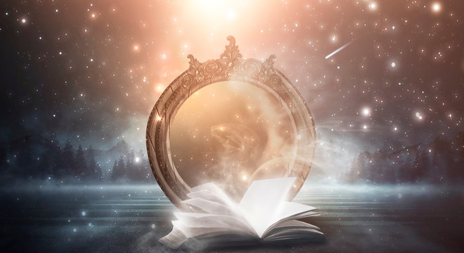 Animation of a magic book on a dark background