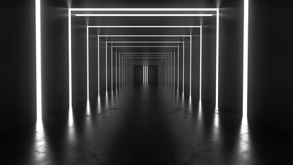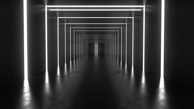 Futuristic Focus: Abstract Black Background with White Glowing Lines