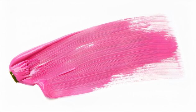 Pink paint creates an abstract form with distinct brush strokes against a white backdrop