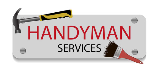 Professional handyman services logo. Hammer and brush. A sign nailed. Repair tool. Vector