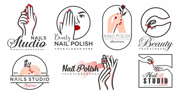 Finger with nail logo emblem design template vector illustration in minimal line art style