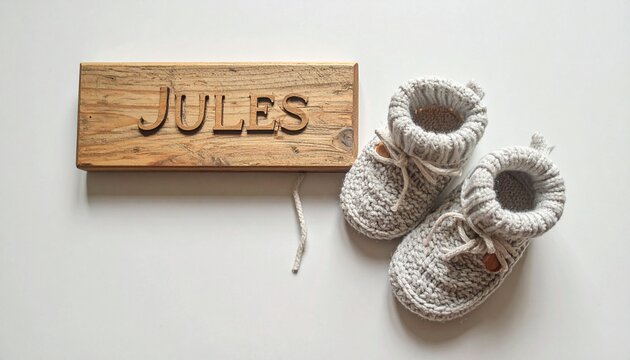 Flat Lay Baby Essentials with Round Wooden Disc Mockup for Pregnancy Announcement and Baby Name Sign
