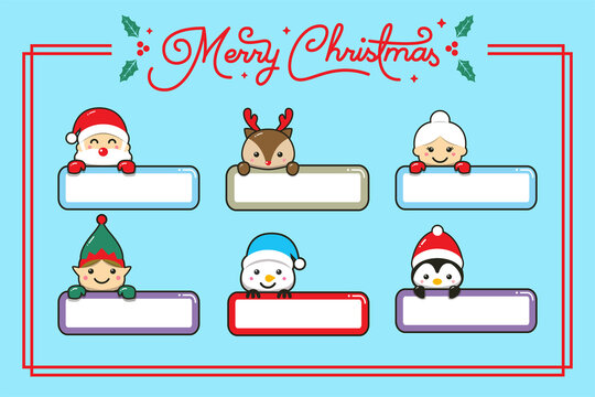 Cute cute christmas characters with label name cartoon hand drawn style