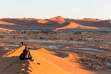Namibia, Namib Desert, Namib Naukluft National Park, tourist photographing landscape