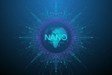 Vector molecules scientific chemistry and physics theme vector abstract background, micro and nano science and technology theme, atoms and microscopic particles.