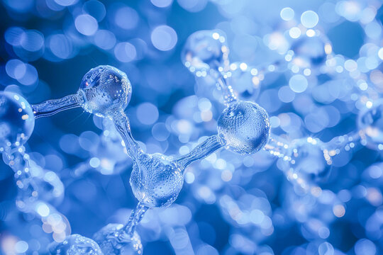 Atoms or molecules, small interconnected spheres, scientific illustration banner. Hydrogen concept as imagined by Generative AI