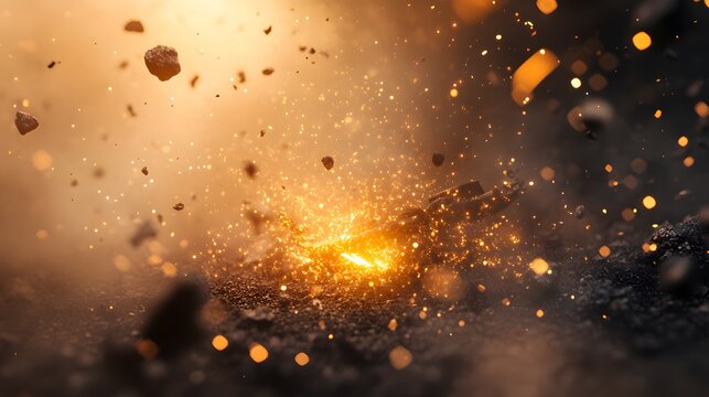 A dynamic shot of a spaceship narrowly escaping an alien asteroid field, with glowing debris scattered in its wake.