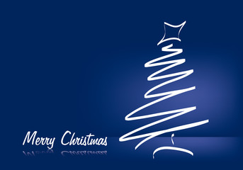 Albero di Natale stilizzato, disegnato con pennellate nere su sfondo bianco. La forma dell'albero è creata da tratti curvi con una stella luminosa sulla punta. Scritta "Merry Christmas" in basso