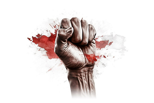 Indonesia Independence Day. On the anniversary of Indonesia's declaration of independence on August 17, 1945. Hand up, clenched fist, flag of Indonesia. Red and white colors.