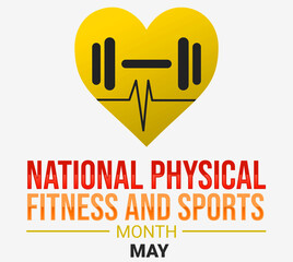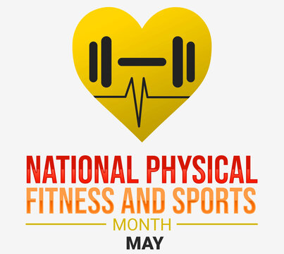 National Physical Fitness and sports month background design with yellow heart and shapes. May is month of national physical fitness and sports, backdrop design