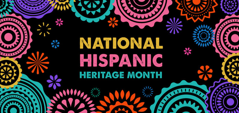 Hispanic heritage month. Vector web banner, poster, card for social media, networks. Greeting with national Hispanic heritage month text, flowers on floral pattern background