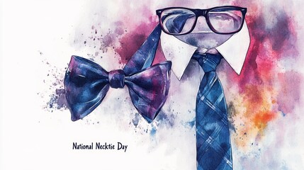 Celebrate National Bow Tie Day with a Colorful Flat Design Flyer Featuring Stylish Bow Ties and Festive Elements for a Fun Event Promotion