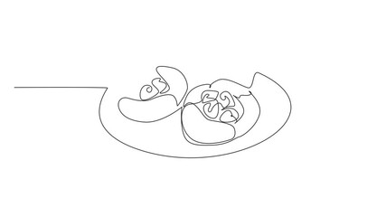 Animated self drawing of continuous one line drawing 3 raspberry popovers on a small plate. High fiber snack for kids. For the weekend. National Raspberry Popover Day. Full length animation
