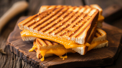 Warm and delicious grilled cheese sandwiches. Toasted cheese, cheese sandwich, toasted sandwiches. Concept for National Grilled Cheese Sandwich Day, April 12.
