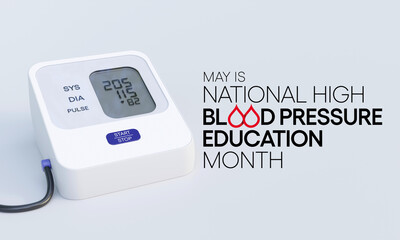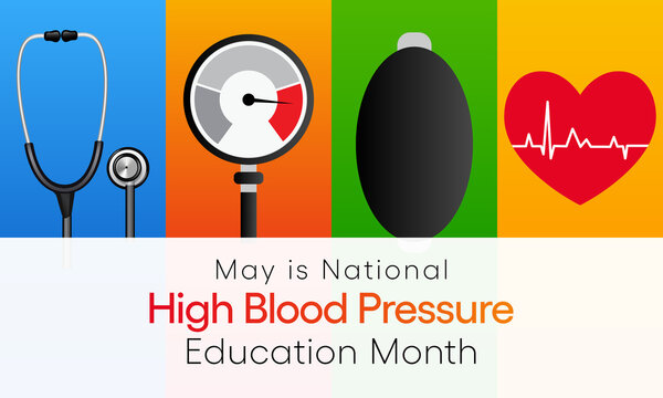 National High Blood pressure (HBP) education month is observed every year in May. it is also called hypertension. vector illustration.