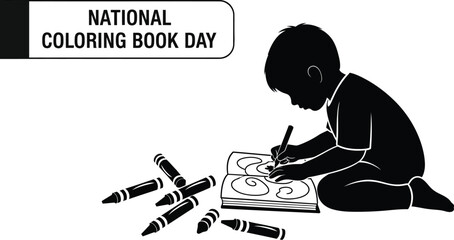 Vector art of a boy is drawing in a coloring book to celebrate national coloring book day