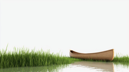 National Day of Unplugging. serene lake scene featuring wooden canoe by lush green grass
