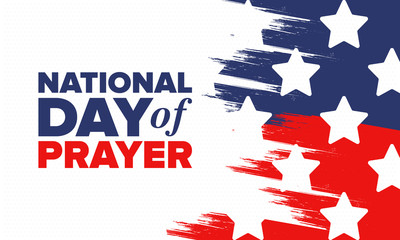 National Day of Prayer in United States. First Thursday of May. Annual day when Americans turn to God in prayer and meditation. Poster, card, banner and background. Vector illustration