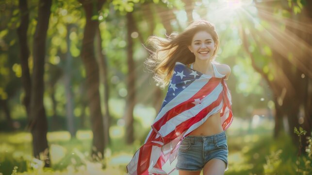 The woman with American flag