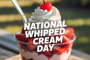 Illustration of national whipped cream day dessert with strawberries and whipped cream