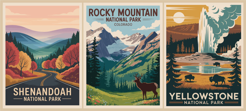 Collection Vintage National Park Posters National Park Art Prints, Nature Wall Art, and Mountain Print Travel Wall Art Living Room Bedroom Bathroom Decor.