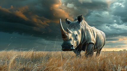 rhino near to extinction specie, Earth Day or World Wildlife Day concept. Save our planet, protect green nature and endangered species, biological diversity theme