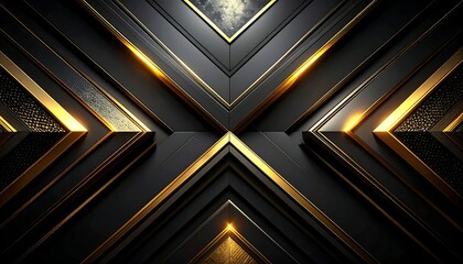 黒と金の立体ラインが交差する高級感あるメタルデザイン壁紙背景