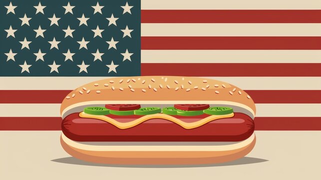 Hot dog and american flag celebrating fourth of july
