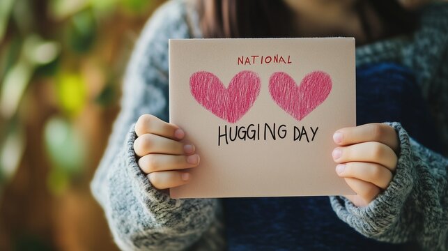 National hugging day written in paper holding by hands.