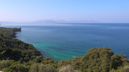 Boats rocking on waves in ancient Port of Byblos opposite ruins of port. Byblos ancient city, Jbeil, Lebanon