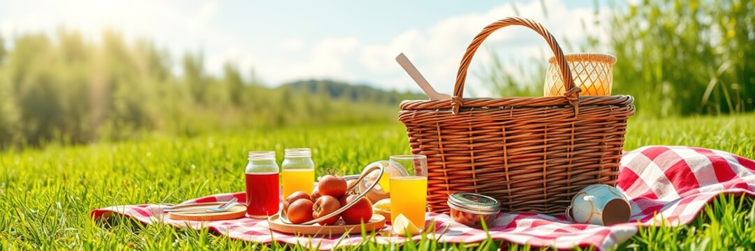 National picnic day celebration with basket and scenic background