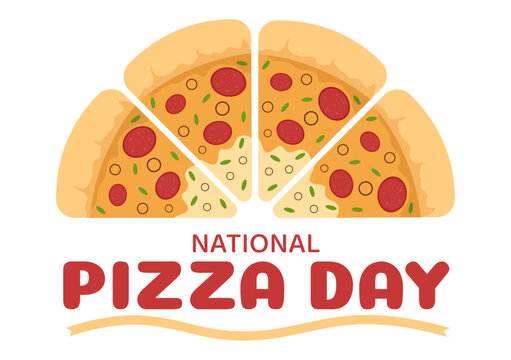 National Pizza Day on Celebration February 9 by Consuming Various Slice in Flat Cartoon Style Background Hand Drawn Templates Illustration