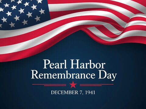7th December Is Pearl Harbor Remembrance Day. American flag, red poppy and more. Suitable for posters, banners and social media. Dark background.
