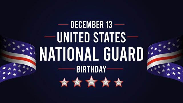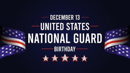 December 13: United States National Guard Birthday Greeting Card Design with Waving American Flag Background and Stars