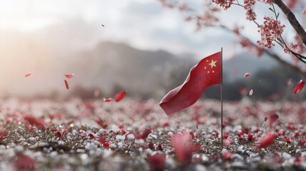 China's National Day: Banner design for People's Republic of China, featuring celebratory elements, patriotic themes, highlighting significance of National Day and showcasing national pride and unity.