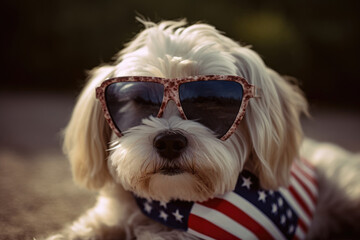 Dog and USA flag, independence day 4th July, illustration for print, generative ai