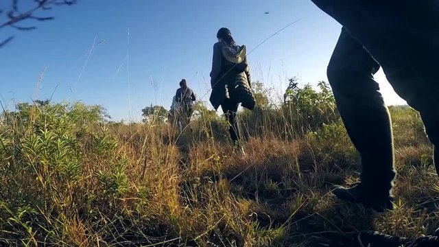 Bush walk safari in the african bush in the Kruger National Park, South Africa.