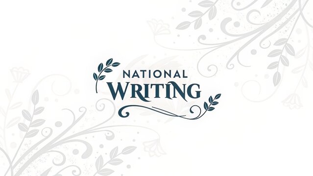 National Writing Day Elegant Banner with Floral Accents on Clean White Background.