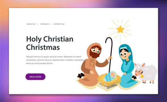 Nativity Scene Banner Doodle. True Story Christianity Background Hand drawn. Religion Icons illustration. Vector Horizontal Design.