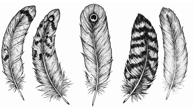 Exquisite detailed line art collection of diverse bird feathers, offering natural elegance and artistic flair