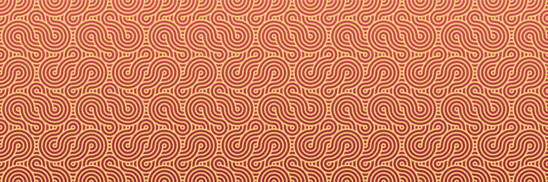 Red Nature Gradient, Organic Jungle Abstract Patterns on Asian Traditional Background, Seamless Vector Motif