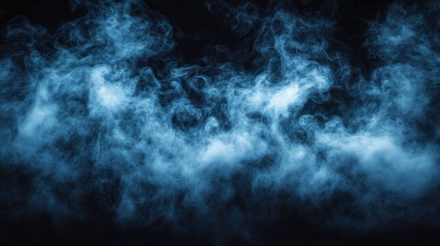 Dense swirling blue smoke or fog with intricate patterns against a dark background, creating a mysterious and ethereal atmosphere