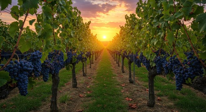 Ripe red tomato on vine among green leaves in morning sunlight, fresh organic garden produce with natural dew and warm golden glow