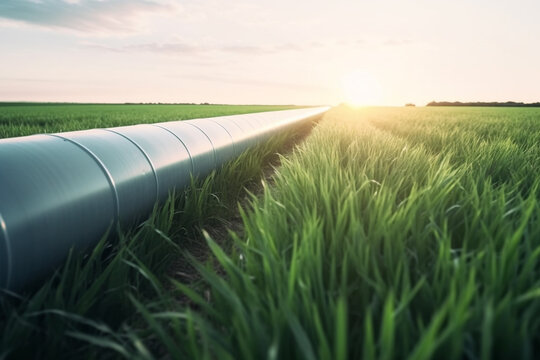 hydrogen pipeline in grass field highlighting eco-friendly, carbon-neutral energy alternatives replacing residential natural gas made with Generative AI