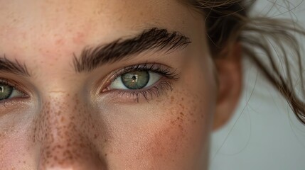 Portrait of a woman with naturally thick and bushy eyebrows, embracing her unique beauty and individuality