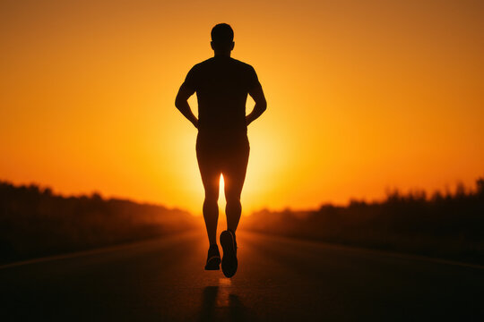 Runner sunrise open road silhouette fitness outdoor morning exercise healthy motivation nature peaceful
