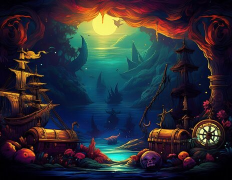Vibrant tropical summer background filled with colorful palm leaves flowers pineapple sunglasses and other beach themed elements creating a cheerful energetic