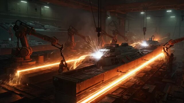 Futuristic naval fleet illuminated by connectivity, showcasing advanced maritime technology in dynamic oceanic environment.