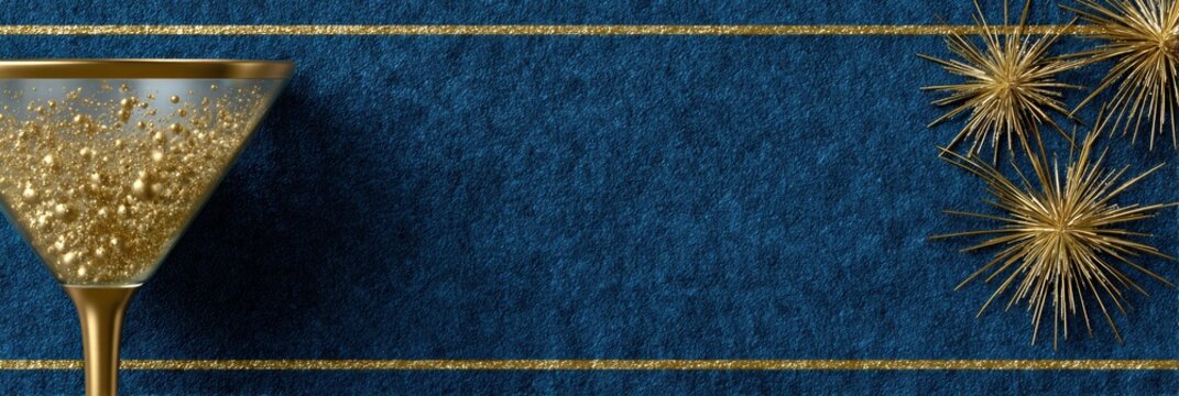 luxury new year card, luxurious new year postcard with navy gradient, gold star constellations, champagne glass silhouette, and elegant script commercial template quality